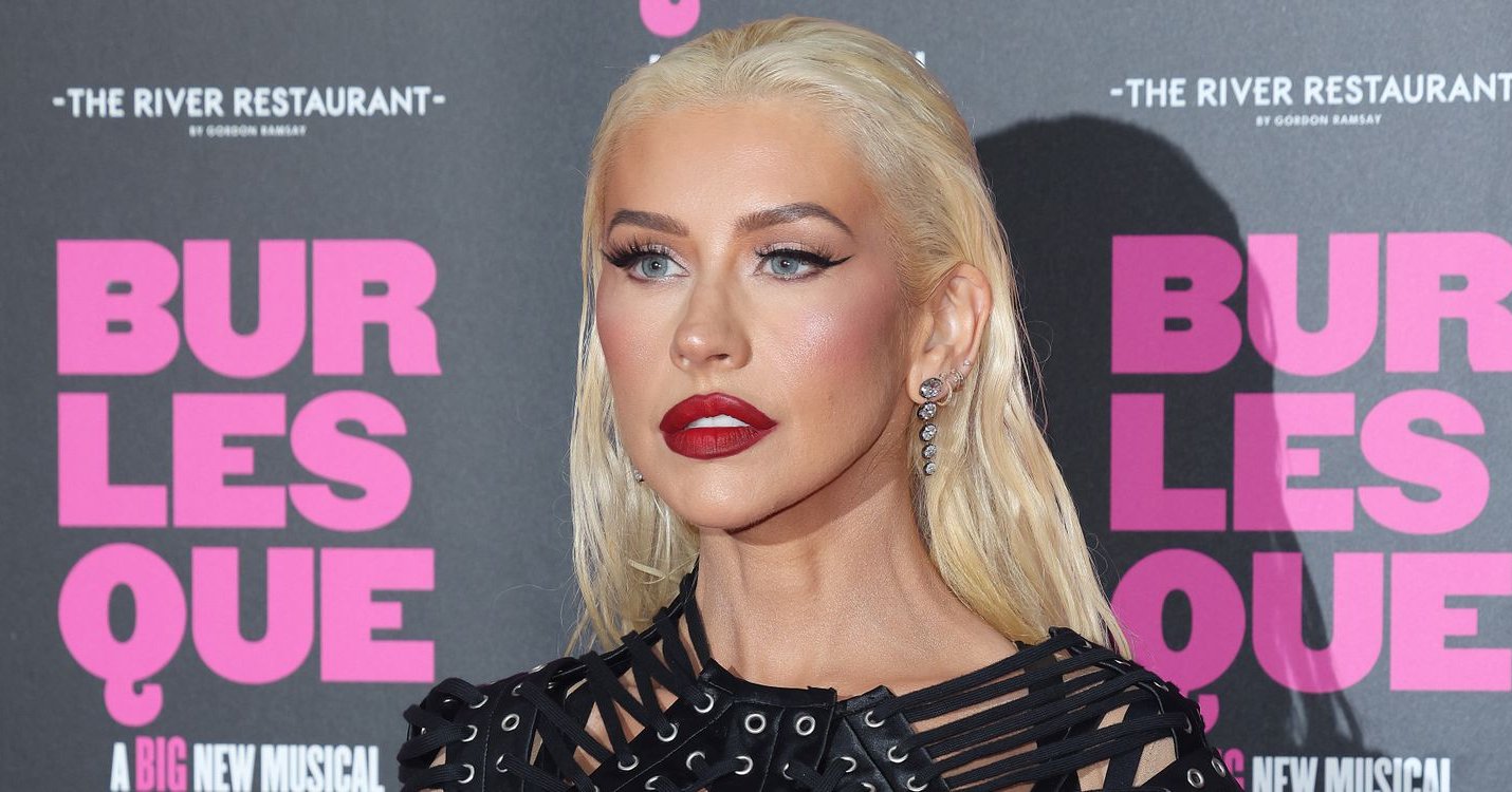 Adding to her festive flair, Aguilera donned thigh-high red suede leather boots, instantly elevating her look – both literally and figuratively. Her signature platinum blonde hair was styled with a voluminous side part and curled bangs, completing her glamorous pin-up transformation. With sparkling earrings, and makeup featuring a bold mauve lip and shimmering eyeshadow, Aguilera captured the essence of festive chic.