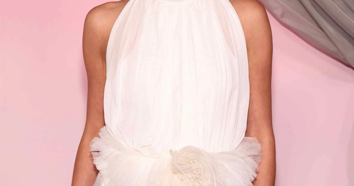 The singer’s gown, from Koma's Spring/Summer 2026 collection, featured a sleeveless turtleneck design with a pleated chiffon overlay. The gown's transparent lower half offered a cheeky peek at a white bodysuit beneath, while strategically placed triangular panels ensured just enough mystery. The look was topped off with a white tulle belt that added a tutu-like flair, cinching her waist and adding feather-like embellishments to the ensemble.